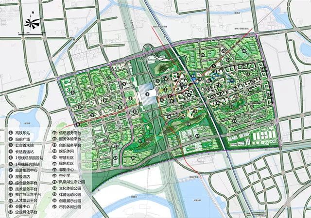 該項目位于徐州市中心城區(qū)東部,與老城中心及新城中心直線距離均為7公里,處于城東新區(qū)、徐州新區(qū)、壩山片區(qū)、金山橋片區(qū)的地理中心位置。規(guī)劃區(qū)內(nèi)有徐州東高鐵站,多條高鐵線包括京滬高鐵、徐鄭高鐵、徐宿淮鹽城際(在建)以及淮徐高速貫穿整個地塊。